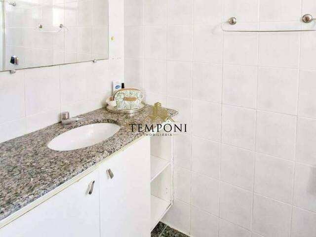 Banheiro social com armários, espelho e box em blidex