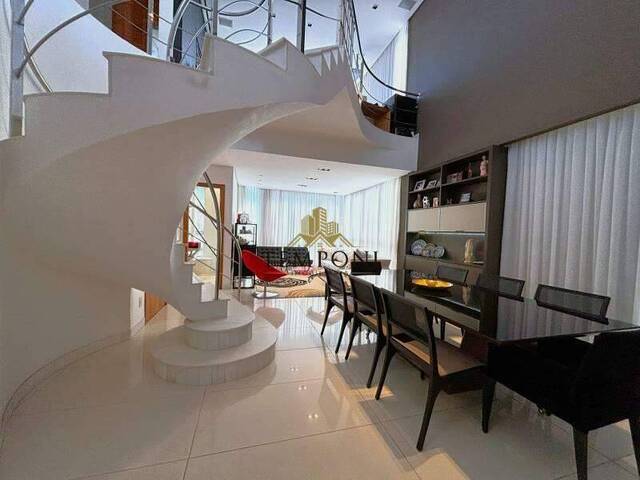 • Ampla sala para três ambientes, com piso em porcelanato, pé-direito duplo e teto rebaixado com projeto de iluminação sofisticada.